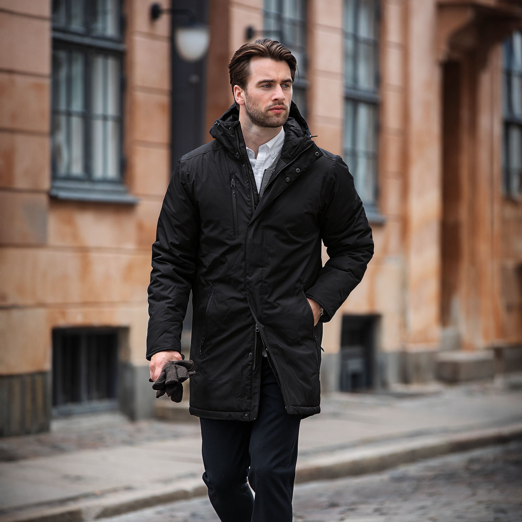 The contemporary and clean design combines traditional details with an uncompromising comfortable fit. Heavily supported by functional and weather protective features, such as taped seams, detachable hood, storm cuffs and a short extended back tail.