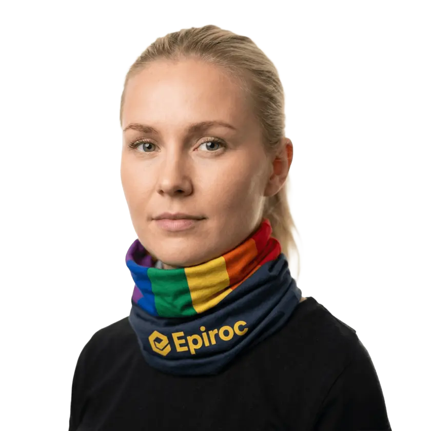 A multipurpose accessory that can be worn in many ways: Use it as a head band, a scarf, a mask, or wear it around your wrist. Perfect for cold-weather runs, workouts, or outdoor activities. Sewn in soft recycled polyester fabric.​ The rainbow design highlights the message Diversity, Equality, Inclusion - a clear statement that reflects Epiroc’s commitment to an inclusive workplace.